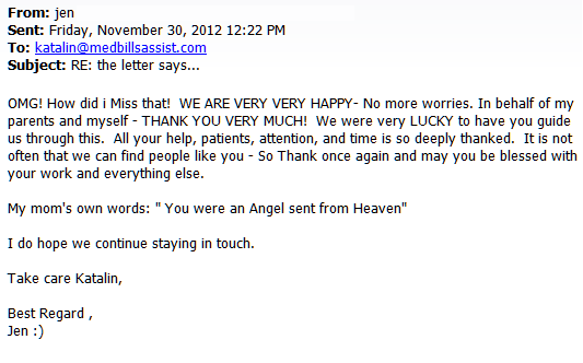 In the midst of a year of overwhelming health billings I found Katalin Goencz of Med Bills Assist. I am now at ease with my health bills knowing that Katalin's understanding of my insurance policies and the maze of hospital and doctor billing procedures is here to help me.