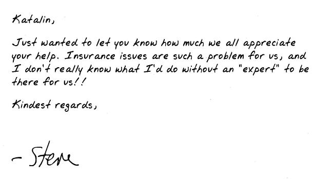 "Katalin was superb in her ability to navigate the sea of medical bills that I received after requiring surgery. I am a surgeon by profession and felt that I had a fairly solid understanding of medical insurance policies, but I was completely overwhelmed.